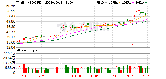 证券日报网讯 10月13日晚间,杰瑞股份发布公告称,摒弃2025年9月30日,公司通过股份回购专用证券账户以集会竞价形式累计回购公司股份3,087,500股,占公司总股本的0.30%。