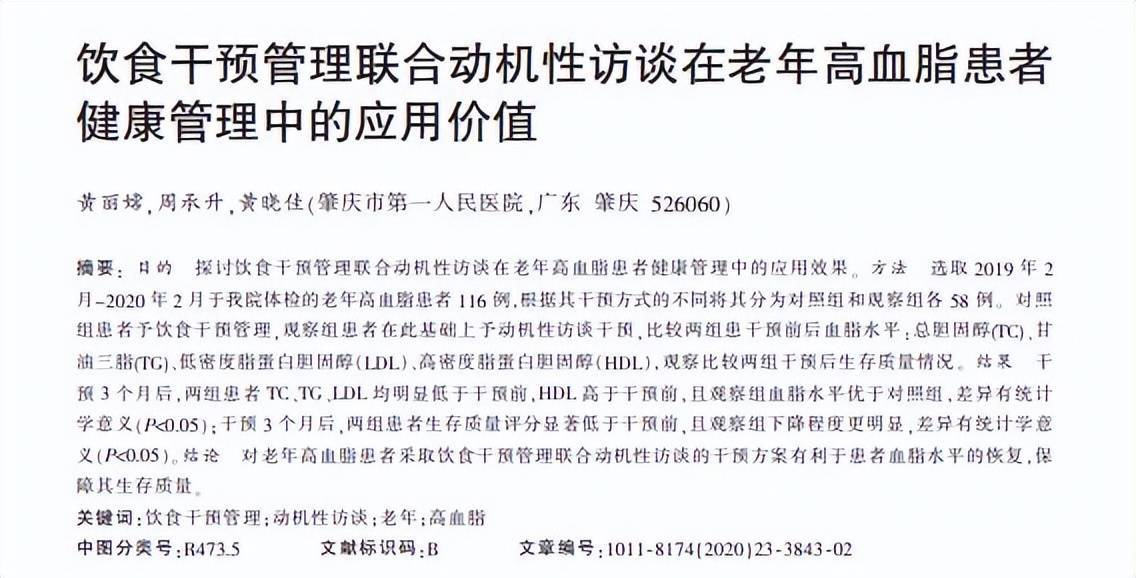 参考尊府[1]黄丽嫦kaiyun中国官方网站,饮食侵略解决集合动机性访谈在老年高血脂患者 健康解决中的利用价值,当代会诊与颐养,2020-12-08