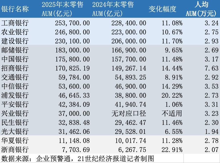 2025年年报知道,绝大大批国有银行、股份制银行的零卖AUM旧年结束正增长,现时已分化出三个梯队。