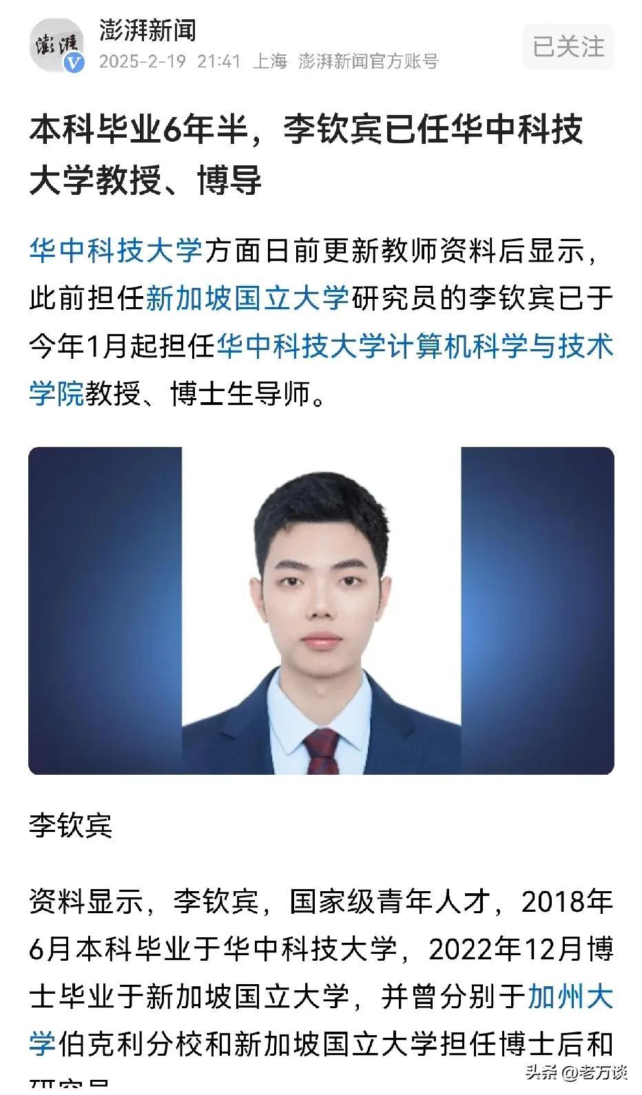 李钦宾自华中科技大学本科毕业6年半kaiyun中国官方网站,成为华中科技大学博士生导师。大学本科毕业6年景为985高校博士生导师,博士磋议生毕业两年多一些时刻成为博士生导师,真实太犀利了!东说念主与东说念主之间竟然莫得可比性收支真实太大了,有些东说念主三年五年,博士都无法毕业,而有些东说念主两三年博士毕业之后,而况很快就成为博导,都备是年青有为,这么的东说念主才越来越多,国度就会越有但愿kaiyun中国官方网站,越有当年。