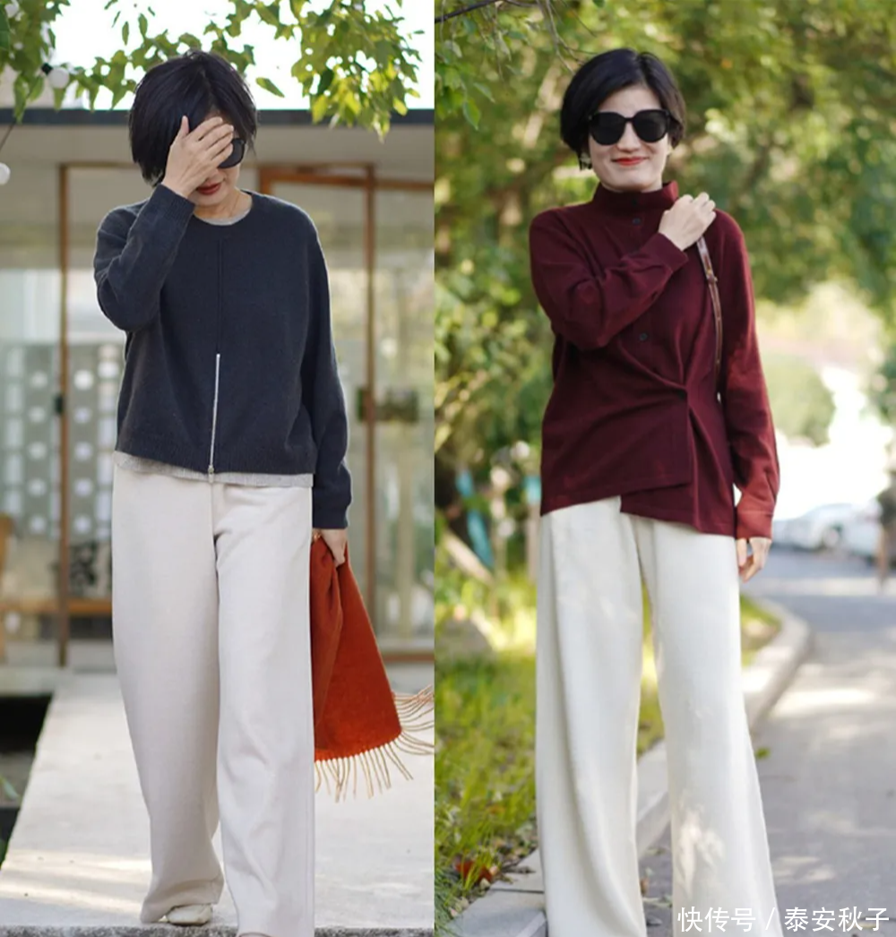 还不错在赤诚衫的外面加上一件既浮滑又百搭,还实穿的短款外衣,会更利于中年女东谈主穿出前卫洋气的一面。