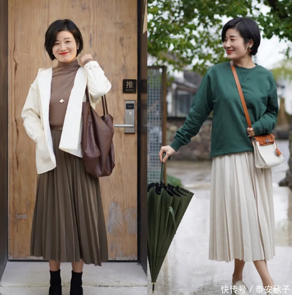要是,年岁在40岁把握的你,想和春日来一场冉冉再见的话,那就试试自带修身韵味的半身裙吧。