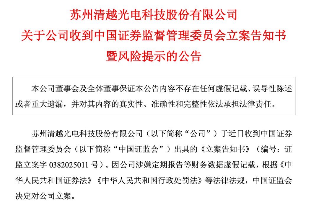2025年8月1日,清越科技及相关东谈主员收到江苏证监局下达的警示函,问题直指清越科技董事长高裕弟实时任清越科技董事会布告兼财务总监的张小波。